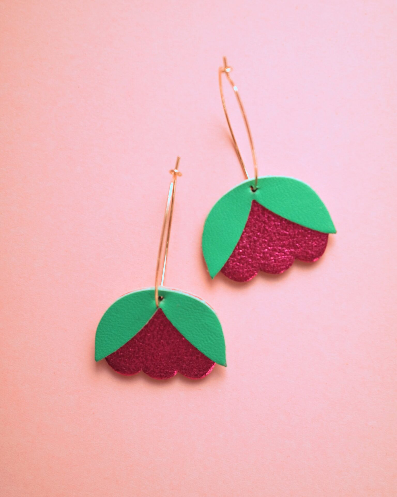 Cuir rose fushsia, vert prasin