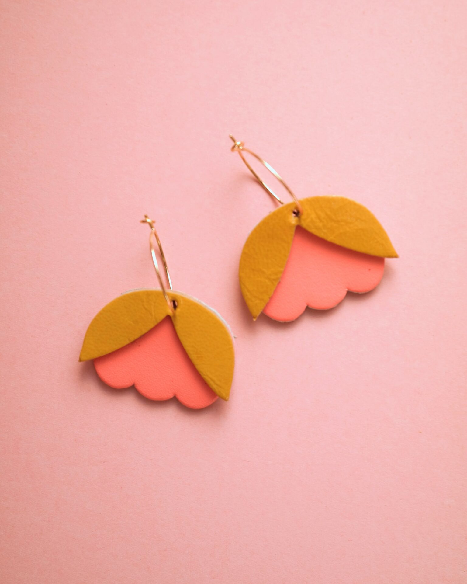 Elles se composent d’une créole dorée à l’or fin et de pièces en cuir.